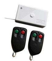 Комплект состоит из приёмника и двух брелков-передатчиков с двумя кнопками. Комплект предназначен для радиоуправления системами охранной сигнализации для установки задержки входа, постановки/ снятия с охраны и контроля доступа. Алгоритм кодирования KEELOQ® с динамическим кодом обеспечивает высокий уровень защиты сигналов. Приёмник допускает одновременную работу 12 брелков-передатчиков (расширение до 112), поддерживает 2 программируемых изолированных релейных выхода типа NO/NC (NO – нормально разомкнутый, NC – нормально замкнутый) и сигнальный выход S. Выходы имеют клеммы, что упрощает подключение внешних устройств. Пользователь может запрограммировать релейные выходы на переключающий (вкл/выкл) режим или режим задержки времени. Выход S (открытый коллектор), предназначенный для подключения внешней сирены или сигнального устройства, выдаёт 2 кратковременных импульса при срабатывании реле и один при отпускании. В приёмник встроен двухцветный светодиод для индикации программирования и состояния первого реле. Два другие светодиода индицируют выходы 1 и 2. Использование комплекта с супергетеродинным приёмником (DWB100Hhet) увеличивает радиус действия и обеспечивает дополнительный режим реального времени выхода, означающий, что выход приёмника остаётся активным так долго, пока кнопка передатчика нажата.