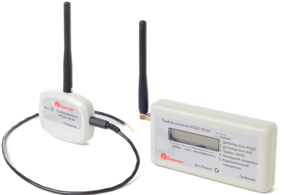 Радиоканальный измеритель - предназначен для дистанционного измерения уровня сигнала на приемнике ИПДЛ-Д-II/4р. Передатчик ПК-02 подключается к сервисному выходу приемника ИПДЛ с помощью провода. Уровень принимаемого сигнала будет передаваться по радиоканалу и отображаться на дисплее ПК-02. Таким образом ПК-02 позволяет юстируя излучатель тут?же видеть изменение уровня сигнала на приемнике.